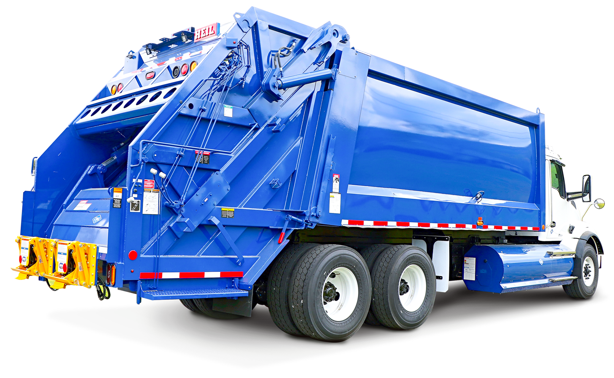 Heil rear loaders combine large hopper capacity with fast cycle times, letting crews load continuously while the packer panel works. These trucks adapt to varied container types and sizes, making them ideal for routes that mix residential and commercial stops.